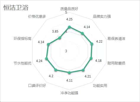 卫浴在“价格优惠”方面的评分为4.36,这不单是该品牌10项指标中得分最高的,也是各品牌该项指标中得分最高的,说明