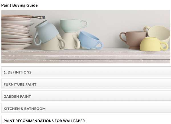 比如对于油漆这个品类,Laura Ashley 会从它不同的种类和颜色的选择,到不同物品的刷漆步骤都进行近似于教程式的解说和介绍。
