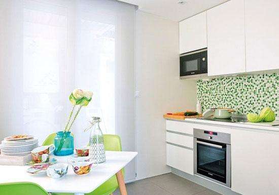 看到这样的厨房你是否有眼前一亮的感觉呢,果绿色的点缀让这个空间看起来轻盈时尚,厨房本来就是制造美食的空间,看到这样的色彩搭配大家可能会更有食欲一些。