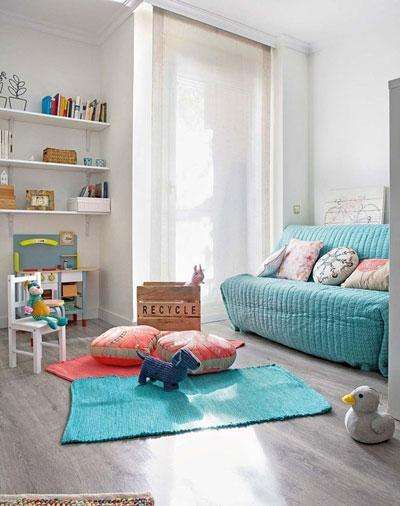 从客厅隔离出一个小小的儿童玩乐读书区很实用,这个为孩子打造的小空间光线充足功能齐全能最大限度的让孩子自由的游戏与阅读,这样的设计适合所有新手爸妈参考。