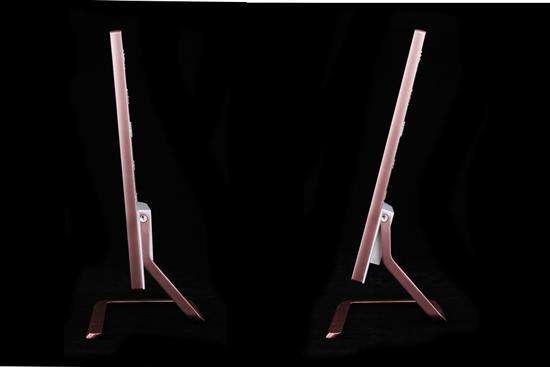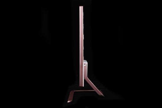 从侧面看,施华洛世奇定制版刀锋5S也是非常的精致,整个机身看上去非常纤薄,机身厚度仅1CM,S型不对称底座采用一体式转轴。