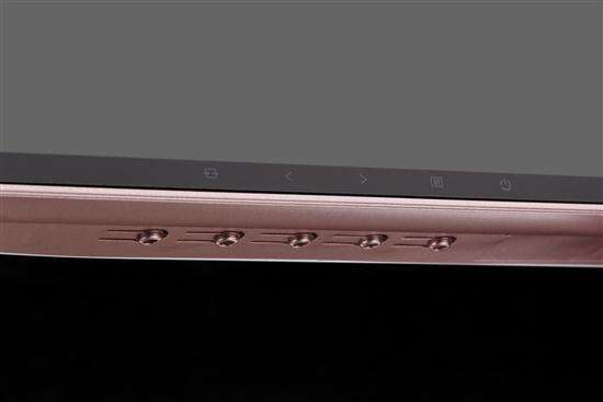 左下角为OSD按键标示,按键设计在边框底部,采用了实体机械按键,实体按键反馈清晰,键程触感适中。