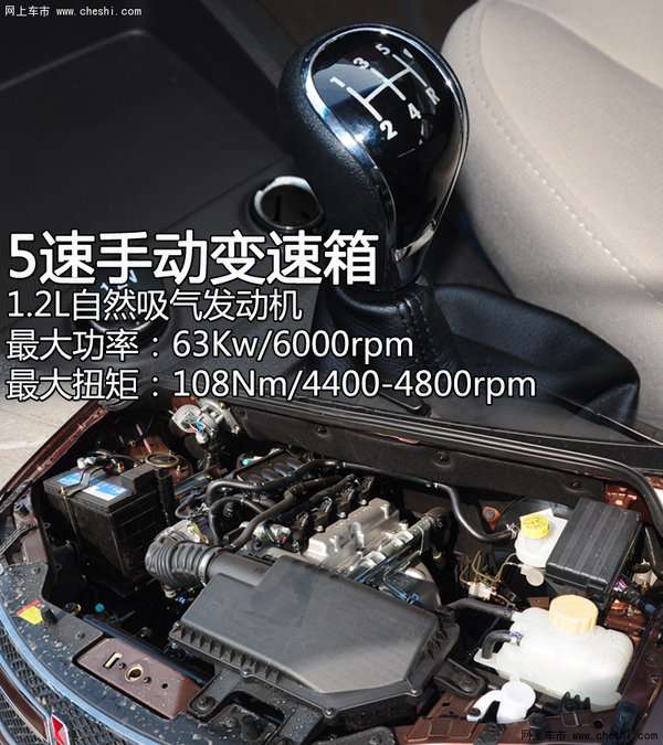 动力方面,五菱宏光S提供两种排量的发动机,分别为1.2L与1.5L,1.2L排量发动机最大功率63kW,最大扭矩108Nm,与发动机匹配的是5速手动变速箱。