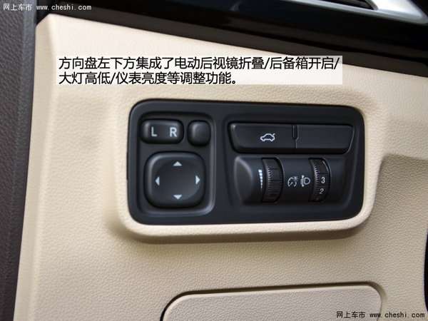 中控台配置也很全买,尤其是中间位置超大的液晶显示屏,下方的旋钮按键也很有质感,细节之处也能够感受到设计者的用心,例如:前排头部遮阳板,不仅配有化妆镜,还配备了照明灯。驾驶位置腿部位置为了防止经常接触塑料材质,采用了凸起样式的绒面材质设计。中央扶手柔软的皮质包裹十分宽大,能够起到很好的手臂支撑作用。