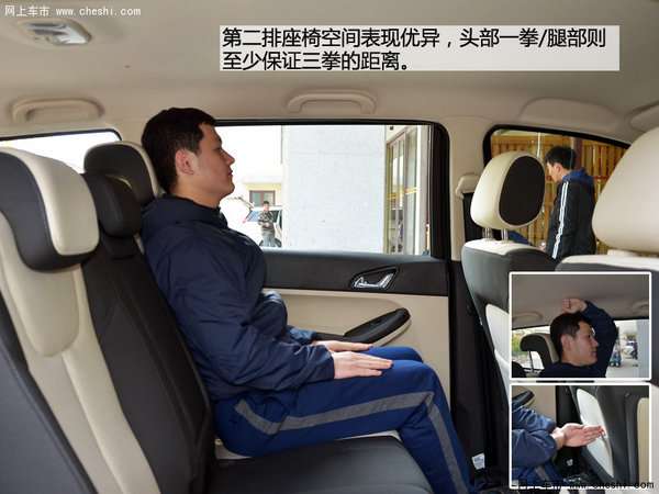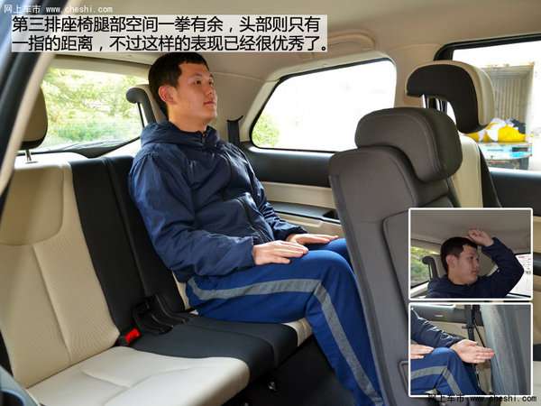 身高178cm的体验者坐进紫瑞泽M7的前排,将座椅调整至合适位置可以获得一拳三指的空间,同一位体验者坐进第二排,表现同样优异头部空间一拳,腿部则达到三拳以上。第三排的变现算不上优异但也完全够用。