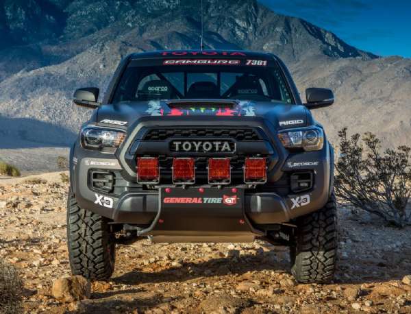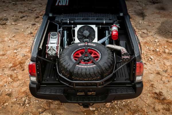 Camburg Racing对这辆赛道版Tacoma的尾门进行了拆除,取而代之的是固定式备胎装置,极