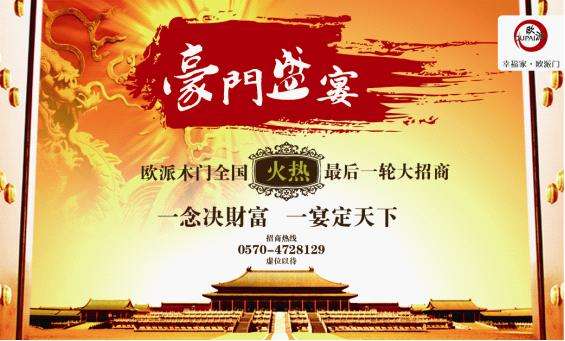 据悉,全球木门制造专家欧派木门2012年度“豪门宴——华东四省同步联动招商会”将于8月8日在欧派门业总部浙江江山举行。据悉,本轮招商将是欧派门业2012年的最后一轮招商,同时此轮造富行动将率先在浙江、福建、安徽、江西华东四省启动。