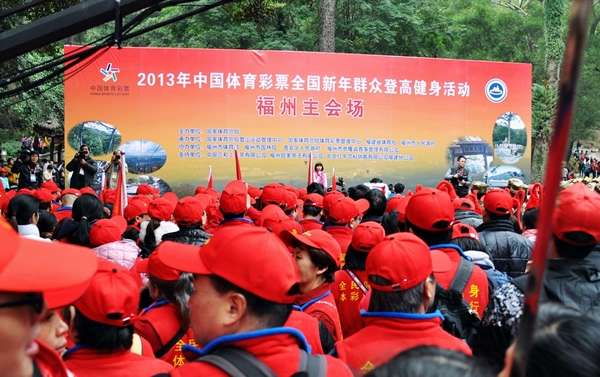 1月1日上午,由国家体育总局主办的2013“中国体育彩票”全国新年群众登高健身活动在福州鼓山拉开序幕。国家体育总局局长刘鹏,中国奥委会副主席、中华全国体育总会副主席吴齐,福建省委常委、福州市委书记杨岳,省委常委、副省长陈桦,市领导杨益民、周振华、周宏、徐启源、朱华、鄢萍、黄忠勇、林瑞良、王长鹰等出席福州鼓山主会场开幕式。