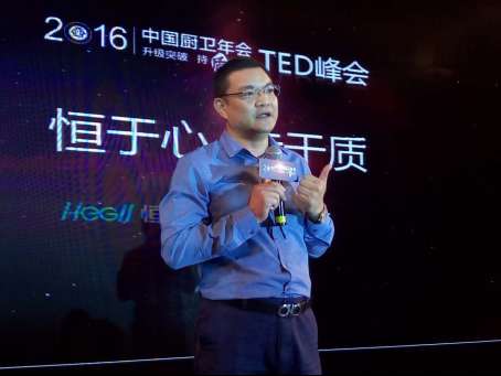 2016年会,恒洁卫浴作为优秀卫浴企业的唯一代表,副董事长谢旭藩应邀在大会发表《恒于心专于质》的主题演讲,向厨卫企业家们分享恒洁专注品质与创新的历程