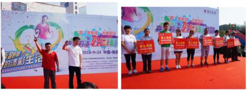 据现场南昌嘉宝莉总经销陶英姿介绍,跑步在当下,已不仅仅是一项运动,更成为一种流行!为了让更多的人参与跑步、享受到运动的乐趣,一直倡导健康生活的嘉宝莉漆,今年在全国各地以不同形式开启了跑步热潮,为各地增添了许多欢乐的色彩!“我们今天活动的所有报名费用和筹得的善款都将现场捐给贫困家庭,为社会贡献一份爱。而我们在南昌刻意挑选泡泡跑这一主题,就是向大家传递开心快乐的生活态度,鼓励人们做公益同时重视健康生活!这与嘉宝传递的品牌精神一致。”