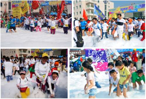 参与者们兴奋地往泡泡跑道上狂奔,然后从一大堆泡泡里冲出来,跑道上瞬间充满了欢声笑语,欢乐的气氛把跑步升级为了一场玩乐大会。泡泡由纯自然椰油、可降解原料以及可食用色素制作,对身体无任何影响。每一个参加者都穿着白色衣服,沉浸在泡泡的世界中,留下七彩绚丽的欢乐记忆。