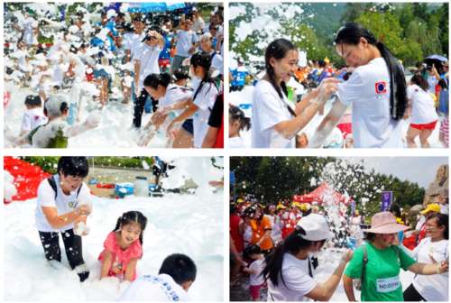 从南昌市区赶来的张阿姨也加入到泡泡跑的队伍,她开心地说:“谁说这样的活动只能年轻人参加呢?我、老伴、还有我们社区的邻居看到消息后就报名了!别看我们年纪大了,但是我们平时也非常注重健康,偶尔也会跑跑步,所以这种年轻人的活动怎么能少得了我们。”活动路程共8公里,中途有两个打卡点给参与者们补充能力。在型男美女领跑下,所有参与者体验泡泡带来的快乐和清凉!