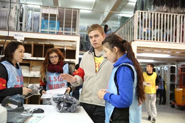 △ 近100名外籍留学生参与伊芙丽物流发货