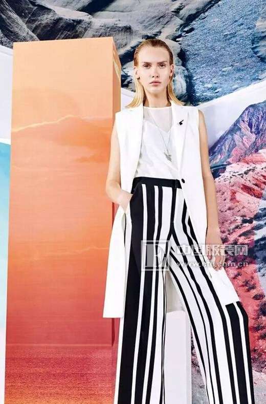 【LOOK6】别致的长马甲,硬朗而不失细腻,更显帅气中性气质,经典西装领,过滤繁杂的简约派。同时大热的阔腿裤在16年还是会继续延续下去,干净利落的裤型,竖条纹的花型使得你更加修长。