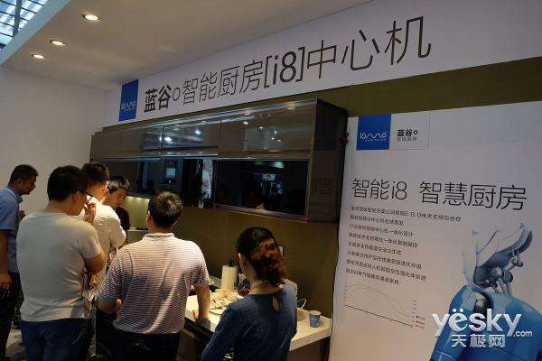 广州蓝谷智能家居进入智能厨房领域十年,此次携手德国E.G.O(高端厨电智能互联技术供应商)、中科院云计算中心推出内置蓝谷“娱悦云”的中心机i8,并在展会上首发。蓝谷i8与橱柜/厨电一体化设计,可在线监测,具有燃气灶和油烟机智能联动与智能匹配、智能预警、智能人机交互、WiFi近景互联、远程自动升级、智能灯光管理、时间管理、娱乐中心、数字广播、美食指导、健康养生和云数据分析与处理、云服务等功能。