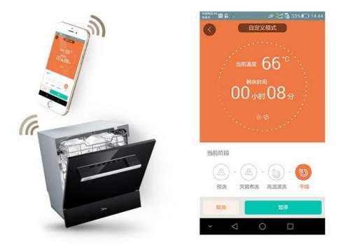 操作非常简便。跟着我左手右手一个慢动作,三步走就OK。一,先倒掉大的残渣,如鱼骨头或排骨;二,将餐具摆好在碗篮中,打开水龙头和电源;三,根据餐具的脏净程度,选择好相应的洗涤程序就可以了。美的洗碗机拥有wifi智能系统,用手机就能DIY清洗程序,只要你设置洗涤时间,就可以完事了。