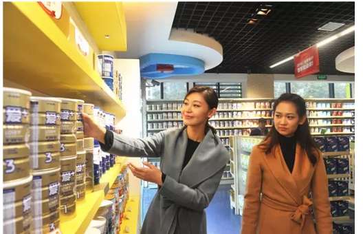 品鉴之后,华姐一行又来到了贝因美亲子商店参观,对贝因美丰富的亲子产品表示称赞,时不时驻足拿起产品细细端详。
