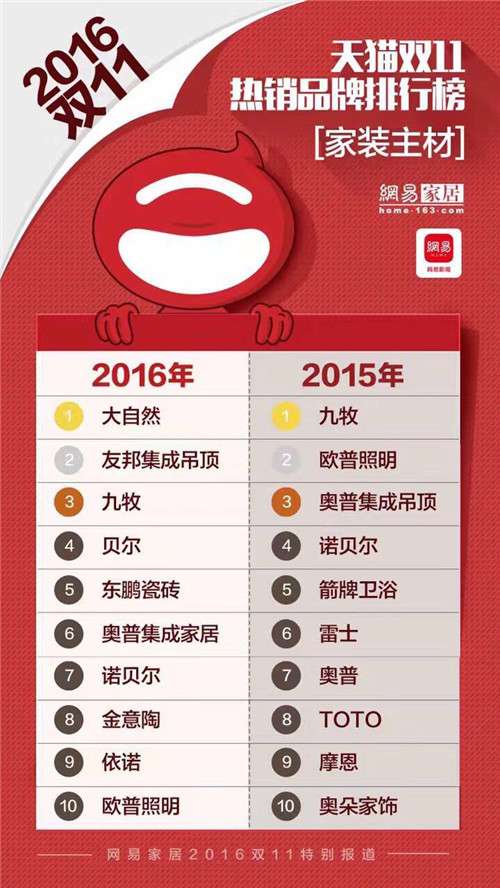 (2016双十一大自然位居天猫“家装主材”第一位)