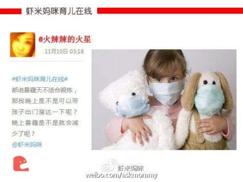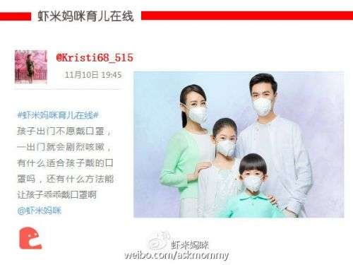 虾米妈咪:PM2.5>50时,孩子外出可以考虑戴口罩,有过敏史、哮喘病史的孩子尤其要注意。
