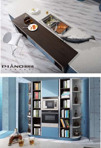 会给人一种纯净、安定的感觉,尤其是在“热情如火”的厨房,热浪、油烟都在考验着厨娘的心情和耐心,皮阿诺深海之寻橱柜以大海蓝色和质感的外观造型,使人的心境能够平静下来,仿佛闭上眼睛就可以拥抱静谧的海洋。