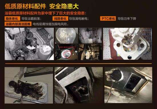 劣质的浴室取暖电器在生产材料和产品性能方面都存在着严重的安全隐患,取暖灯泡不防爆、机箱零件材料不阻燃等都是引发事故的主要原因。