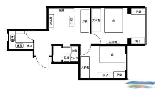 4.两个房间的布局都要完整,老人偶尔可以过来带带小孩;