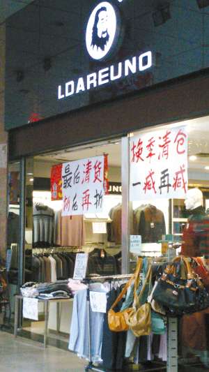 根据市民的反映,记者在祖庙路丽园商场一楼找到了一间“法国老人头”专卖店。记者在店外观察到,这间专卖店的图标LOGO是一名中年模样“大胡子外国人”的画像,下附一行“LOAREUNO”英文标注,店前用醒目的粗体字挂着“换季清仓”、“最后清货”的