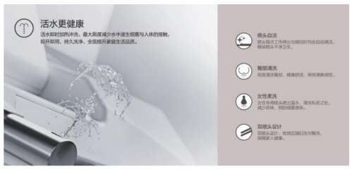 活水即热,无需等待,持续水温恒定,想用多久就用多久,可为全家提供连续的温水洗净,多种方式多角度的冲水,随心调控,满足家庭不同成员所需,同时搭载功能完善的智能化配置,为您提供舒适的水洗洁净新生活。