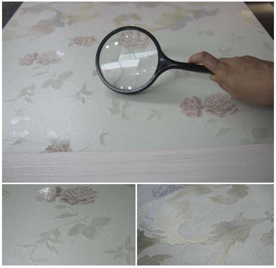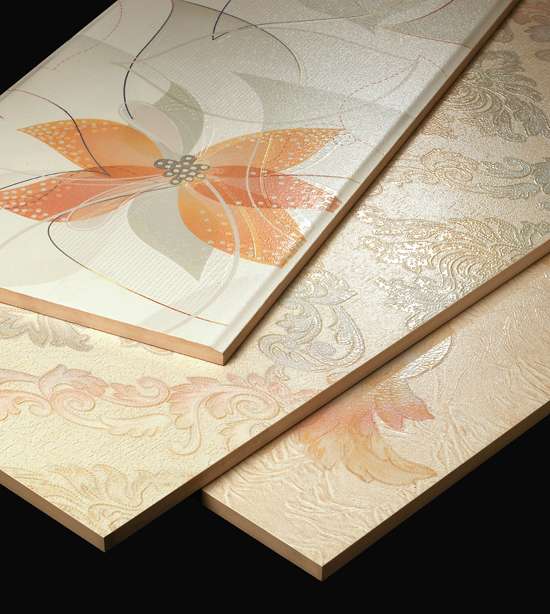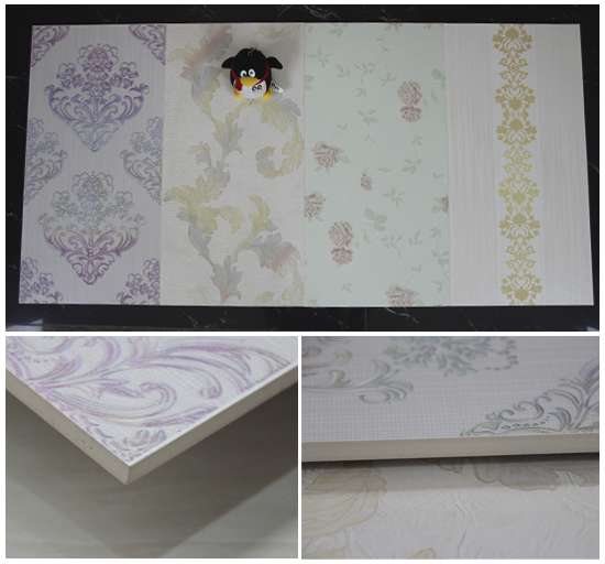 千珠幻彩釉面砖采用的幻彩印刷釉具有凸起结构,小编用放大镜细察看,砖面花纹精致灵巧、清新活泼,色泽绚丽多彩,用指腹触摸,便能感受到砖面温滑细腻的质感,并带有有轻微的凹凸感,给人以卓越视觉的效果,十分清新怡人、独特雅致。