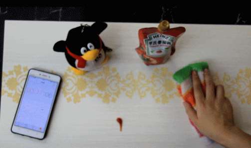 模拟日常生活中可能会出现的情景,小编分别用日常都会接触到的番茄酱、油性笔和颜料对千珠幻彩釉面砖进行防污考验,测试这款釉面砖的防污性能是否优秀。经测试后发现,番茄酱、油性笔和颜料在砖面上停留一段时间后,只需用抹布轻轻一擦便能将污迹擦除干净,可见这款釉面砖的防污实力不凡。