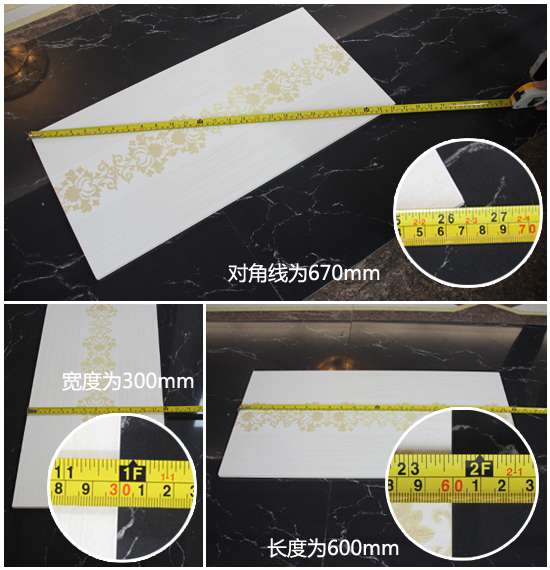 瓷砖的尺寸和平整度密切相关,任何小小瑕疵都会影响铺贴效果。威尔斯这款千珠幻彩釉面砖十分精巧,经现场测量,尺寸为
