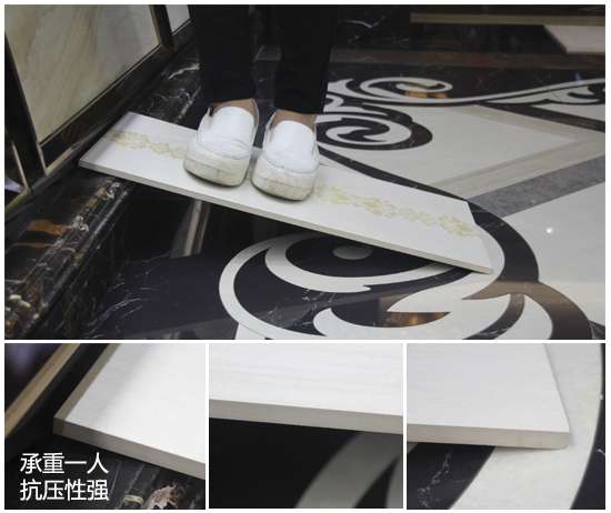 名的成年人,瓷砖没有出现任何断裂的声响和现象,可见这款釉面砖尺寸虽小巧,但承重能力与抗压性还是很强大的。