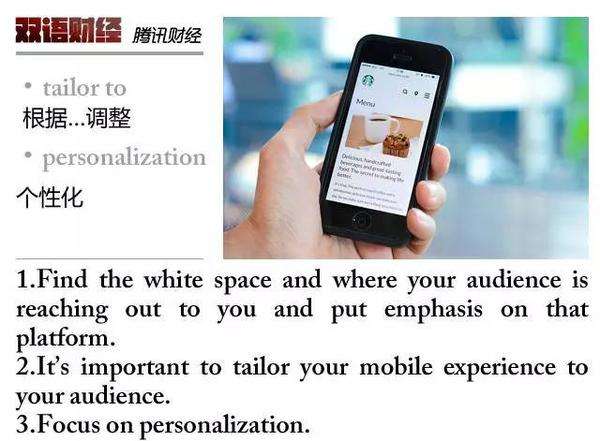1.出现在所有客户需要的地方。比如,找到在客户服务上比较空白的平台,只要客户能在上面联系到你,你就要重视这个平台。星巴克在Facebook上有3500万粉丝,在推特上有800万关注者,在Instagram上有接近500万的关注。在这些平台上它持续与客户沟通,获得反馈。2.移动化!消费者在手机上花的时间要远多于其他设备,因此,要调整自己移动端的服务。3.个性化。咖啡师会确保送到你手上的咖啡是你要的最喜欢的口味,另外每个星巴克的门店看起来类似,但进去都有个性化的区域,甚至每个门店会根据区域的不同播放不同的音乐。