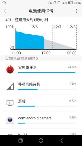 同时,我们对这款机器的耗电程度做了简单的测试,可以看到,在14:30时,手机的电量为59%,正常使用一个小时之后,电量为47%,就使用情况来看,保持一天一充是必须的。