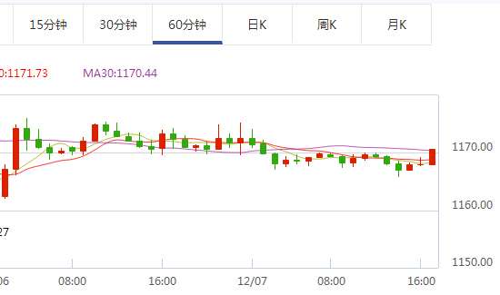 周三金价延续弱势震荡局面,周一意大利公投引发的短暂的避险情绪,导致金价冲高至1188附近遇阻快速回落,一度跌创十个月低点至1157.27后在低位买盘的帮助下回升至1170附近企稳。