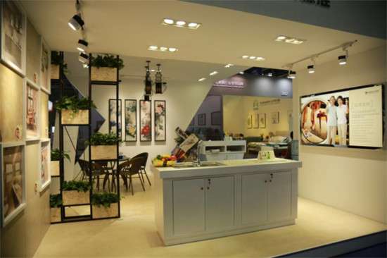 位于本届老博会1F07展位上的蒙娜丽莎适老建材馆,以“适老建筑材料新语言”为设计理念,领衔旗下的明星产品(防滑仿古砖、陶瓷薄板、陶瓷艺术装饰画),并以场景化重现多种应用空间,带出功能性建材在未来家居生活空间的无限可能性。