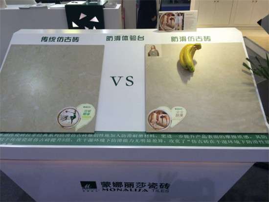 蒙娜丽莎瓷砖拉菲经典系列产品,其表面采用独创研制的防滑耐磨材料,提升产品表面的摩擦质感,其防滑能力提升5倍,提高家居的“安全级别”,做到真正防滑,保障家人的安全。在本届老博会上,蒙娜丽莎更展出了多款防滑砖,花色更加明亮柔和,有助于保证室内的亮度,为老年人的居室营造出柔和宁静的空间气氛。