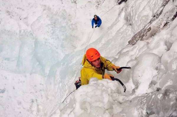 冰柱攀登对攀冰者的经验和心理都提出更高的要求,无论打冰镐还是找下脚点都要非常精细、小心。