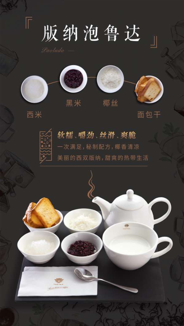 TAETEA大益茶庭致力于创新概念饮品与食品的研发,满足现代都市年轻人多元化的品饮需求。茶与食的结合,博采特色食茶文化,在传统与新派之间的完美结合,即时补充能量,成为都市群体时尚品位的标签。可以说,大益茶庭也是一家倡导健康轻食主义的餐厅。