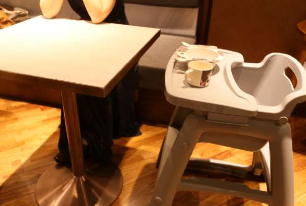 专门为儿童预备的环保材质的餐具、进口的宝宝椅子。