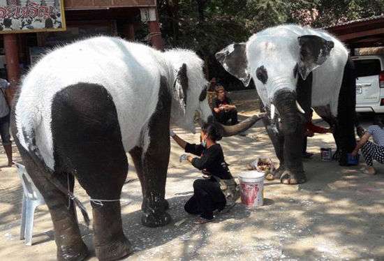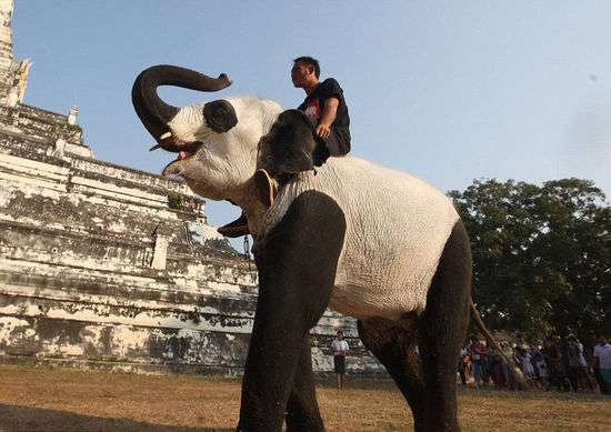 (原标题:泰国象园办“熊猫展” 大象化妆成大熊猫(高清组图))