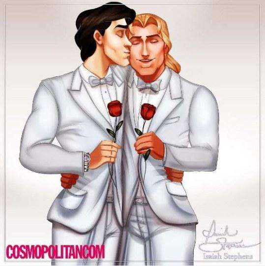 正如我们所知,迪士尼童话电影的最后一般都是王子与公主在一起的大团圆结局。虽然王子与公主门当户对,但这样千篇一律的结尾却很难给影迷们带来新意。最近有一位国外画师Isaiah Keith Stephens就通过画笔改变了这个一成不变的结局。要是王子与王子在一起的话,那将会擦出什么火花呢?我们就一起来看看吧。
