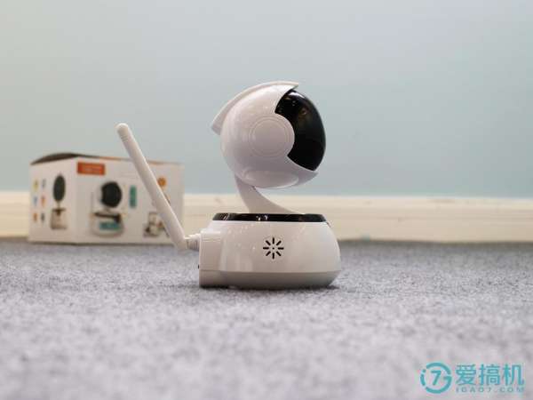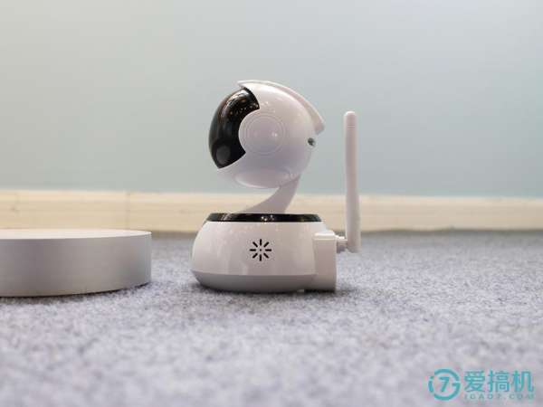 从侧面看云视通智能摄像机C5看起来更像一个智能机器人,科技感十足。机身右侧的花瓣开孔是智能摄像机的扬声器,可以用于远程语音、报警警报灯功能,别看它开孔不大,但是爆发力却不小,响亮的报警声足以吓退潜入家庭的小毛贼,而左侧的开孔符合对称美学设计,主要功能用于散热。而摄像机后面的小尾巴是一根外置天线,用于接受wifi信号,这根天线支持上线90°、左右180°旋转拒绝wifi死角,保证摄像机的流畅工作。选材方面云视通智能摄像机C5采用了食品级PC材质,安全无毒使用放心,塑料表面经过钢琴烤漆处理,在柔和的灯光下熠熠生辉,非常符合家庭的温馨氛围。