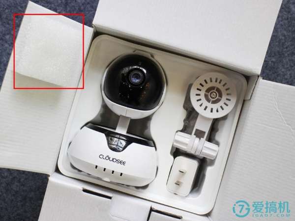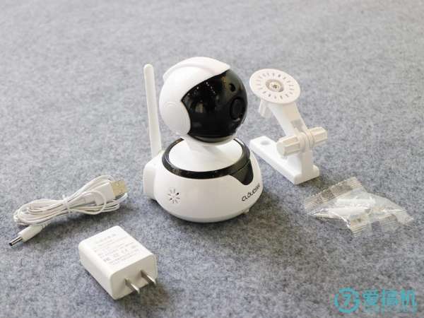 最后上一张云视通智能摄像机C5的全家福,分别有摄像机、充电插孔、充电线、安装悬挂支架和固定螺母。还有一点值得一提,在包装盒接触镜头的部分厂家很贴心的贴上一款防撞泡沫做保护,一来保护镜头不被撞坏,二来可以防止镜头被尘埃沾染,影响效果。