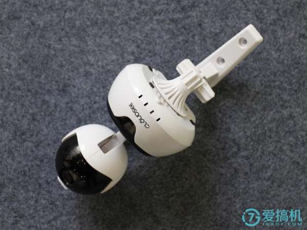 云视通智能摄像机不仅可以正面摆放,还可以实现墙体安装。摄像机底部有螺母设计,可以与官方标配的悬挂支架完成墙体安装,而且悬挂支架也可以实现180°旋转,保证机器安装后可以完成整个房间的视频监控覆盖,而底部的格栅则主要起散热功能。