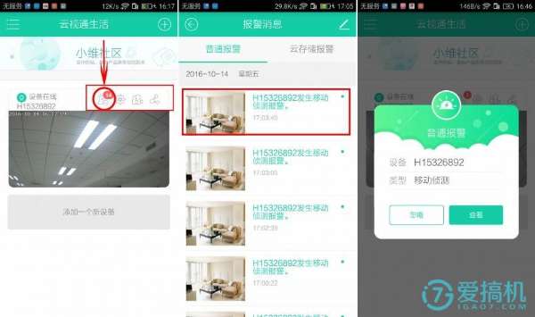报警查看功能:点击首页警报图标,进入报警录像界面,选择想要查看的时间段报警录像,目前云视通智能摄像机只支持普通报警查看,云存储报警录像后将在后期app更新中逐渐加入。此外,报警录像查看必须保证摄像机有内存卡,没有存储卡摄像机智能实现实时播放,不能完成录像回放,一定要切记内存卡的加入。