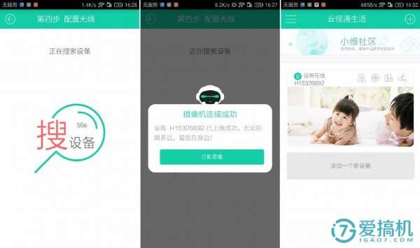 收到声波后点击下一步,等待手机搜集设备,通常10s左右即可完成绑定链接,截止到此完成摄像机和手机绑定,接下来你就可以尽情享受远程观看、对讲、抓拍等功能了。