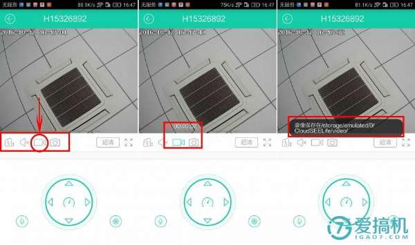 摄像机logo则是抓拍录像功能,抓拍的录像也会存储在手机中,留做备份。