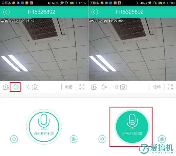 云视通智能摄像机C5支持远程语音功能,存在两种方式:一是远距离拾音功能,开启左图的扬声器logo手机app即可完成对摄像头端的声音监控,云视通C5的最大拾音距离为6米,基本可以覆盖整个房间,家里有任何风吹草动,手机都可以清晰识别。图中的麦克风logo则是开始双向语音对讲功能,云视通智能摄像机C5支持全双工功能,可以向手机通话一样自如,非常方便。