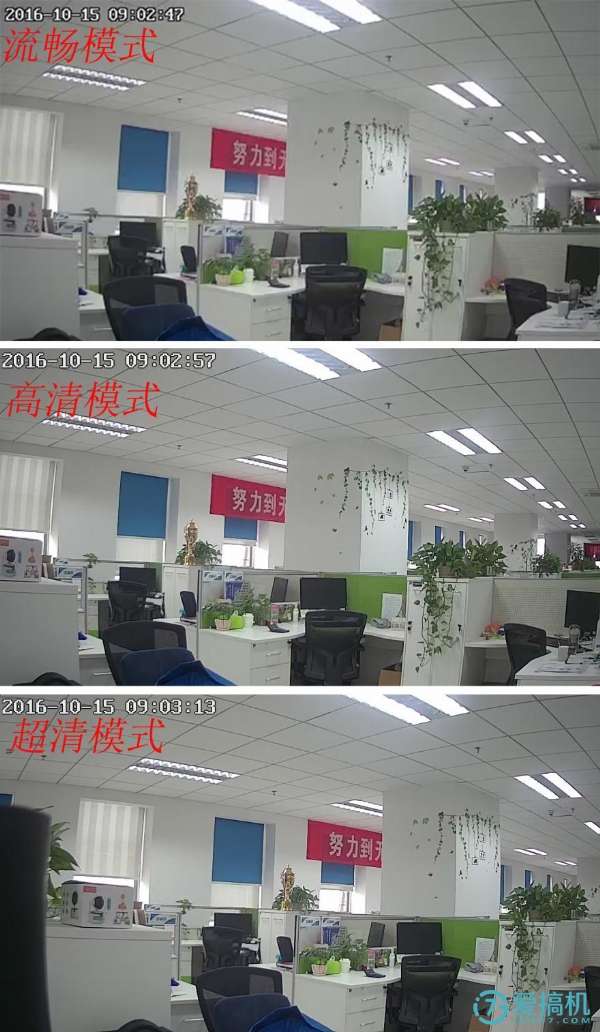 画质的清晰度是衡量智能摄像机好坏很重要的指标,云视通智能摄像机为了满足不同用户、不同网速的需求,分别设置了流畅、高清和超清三种模式,仔细对比以上两张图,除了流畅模式的画面稍微有涂抹现象外,高清模式和超清模式下的云视通智能摄像机C5的成像效果都非常令人满意,画面中的叶脉甚至都清晰看见。